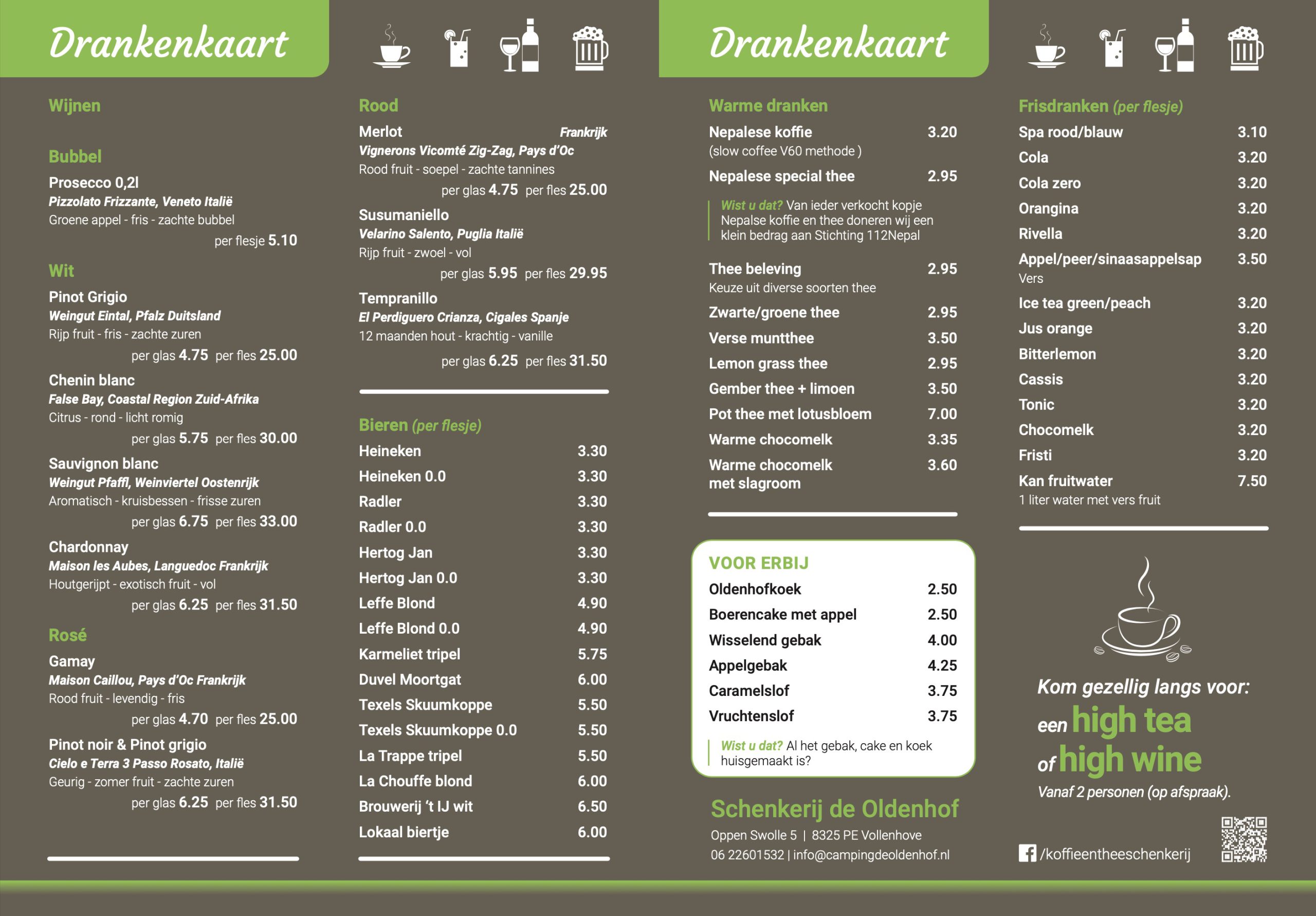 Reserveer vanaf nu een heerlijke High Tea of High Wine bij ons. Neem even contact op voor alle mogelijkheden en om te reserveren.